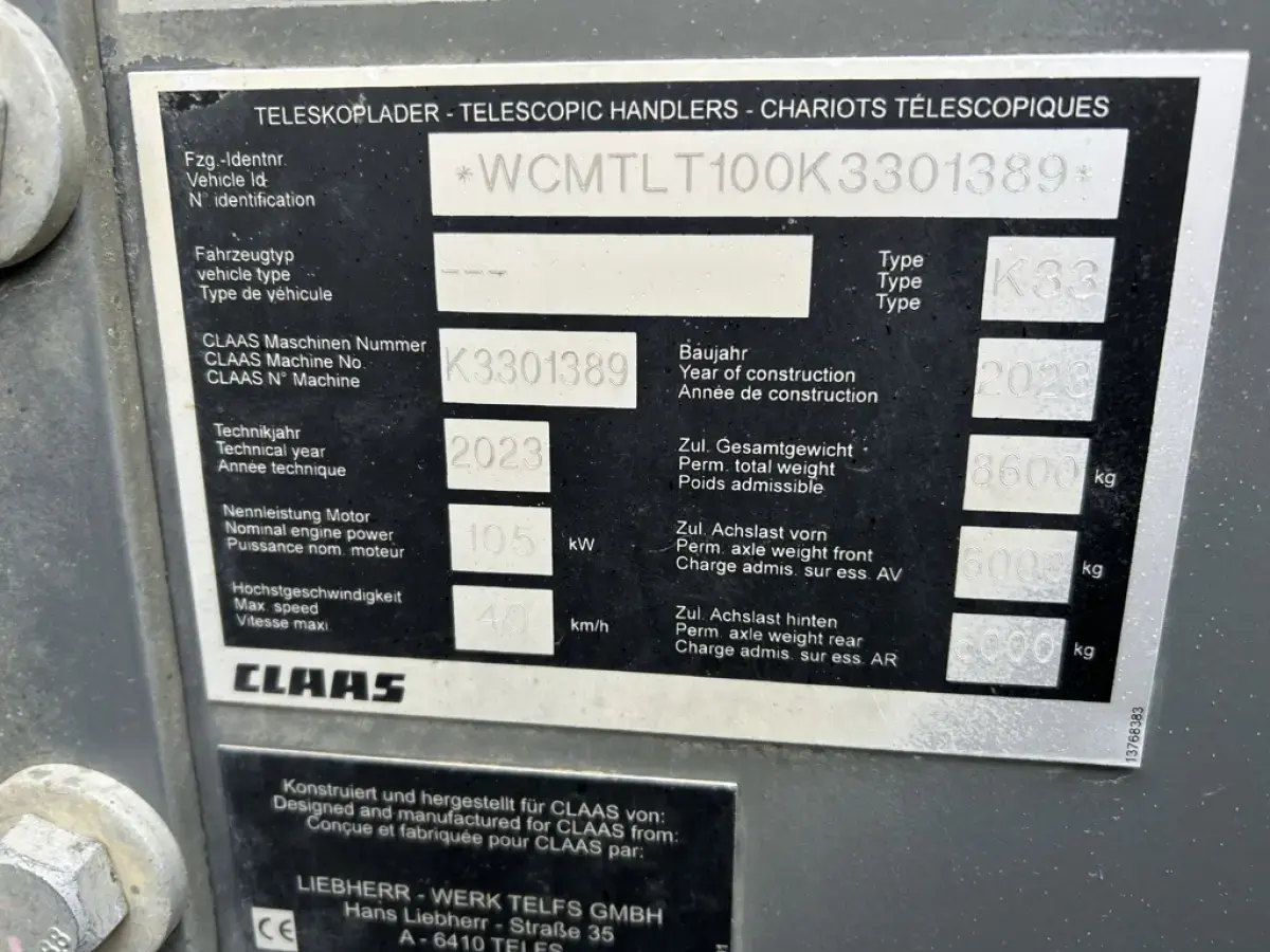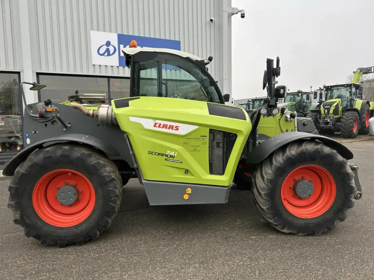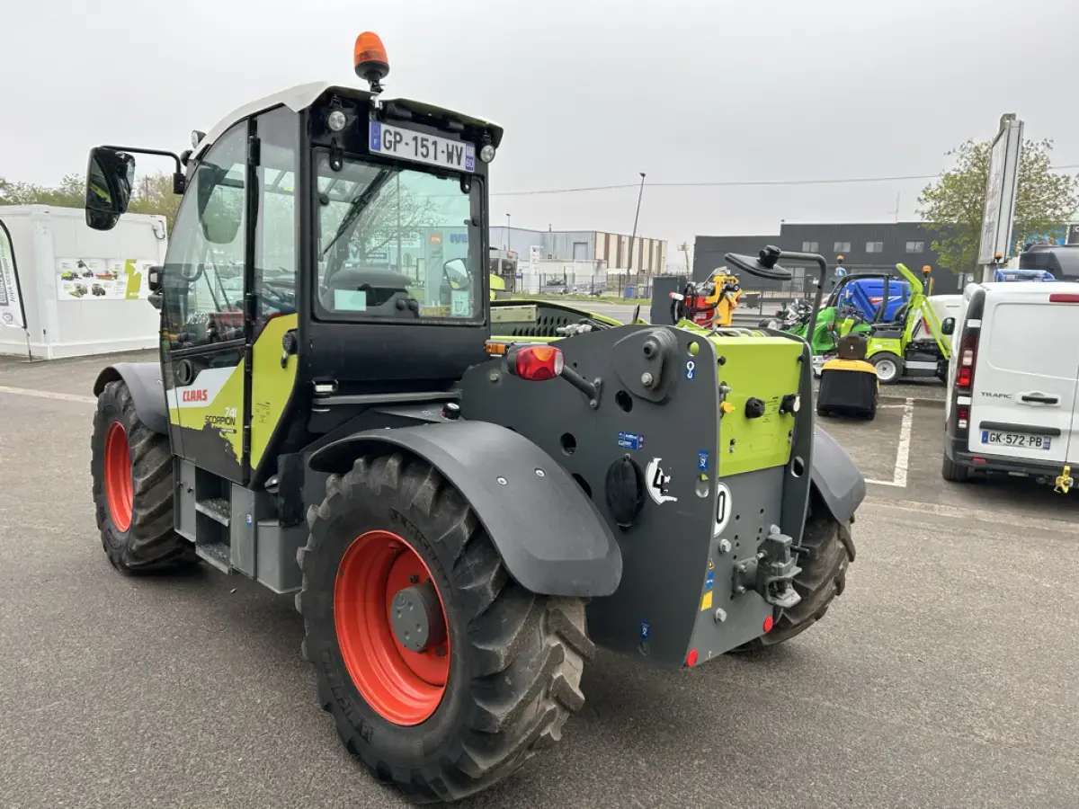 Télescopique Claas Scorpion 741 de 2023 - 136 cv - 3900 Heures - levage 7m00 - 4.1 Tonnes - Tête Claas - Verrouillage Automatique - Pneumatiques 460/70R24 - Crochet Arrière
