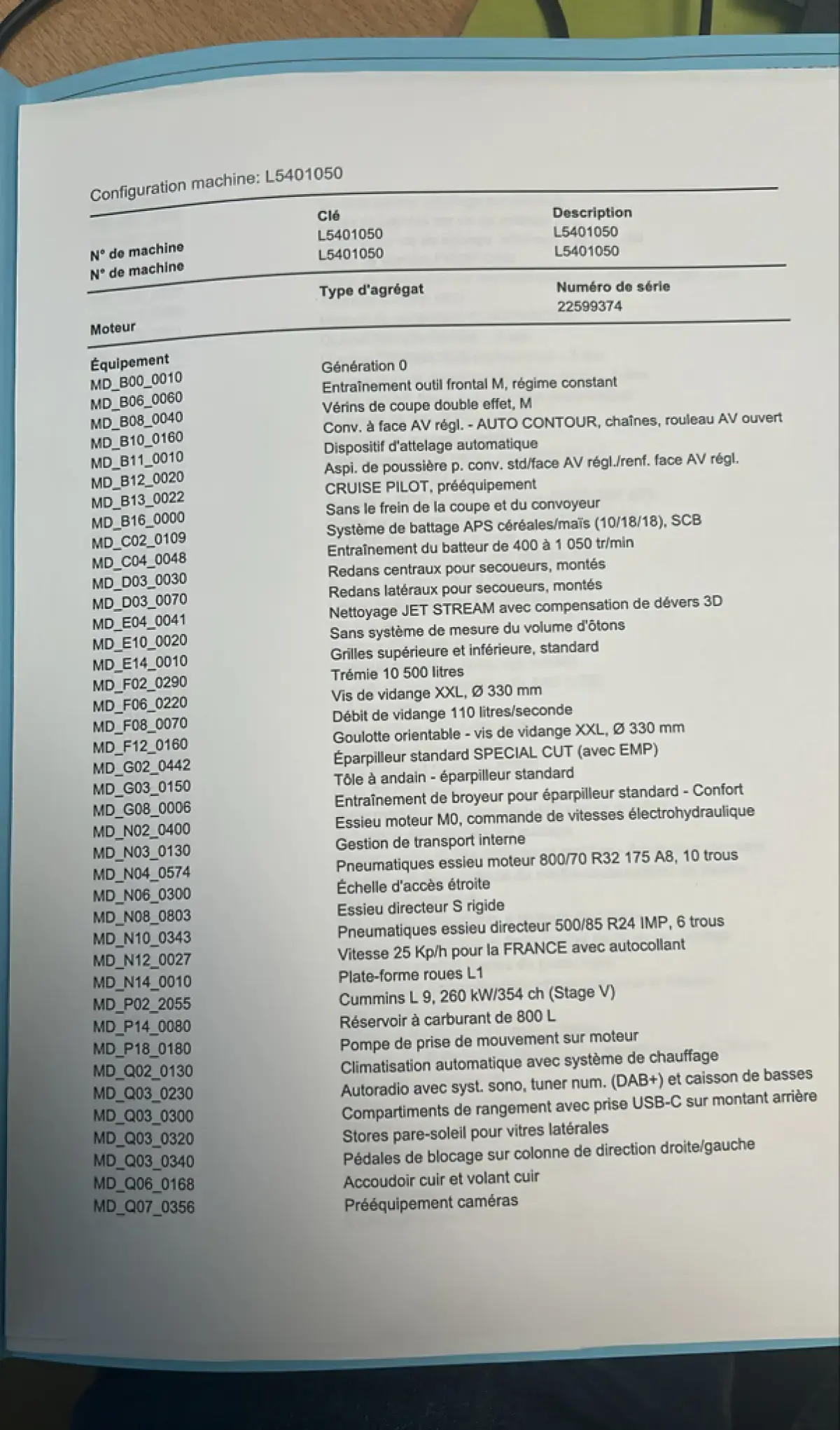 Options du convoyeur de la moissonneuse