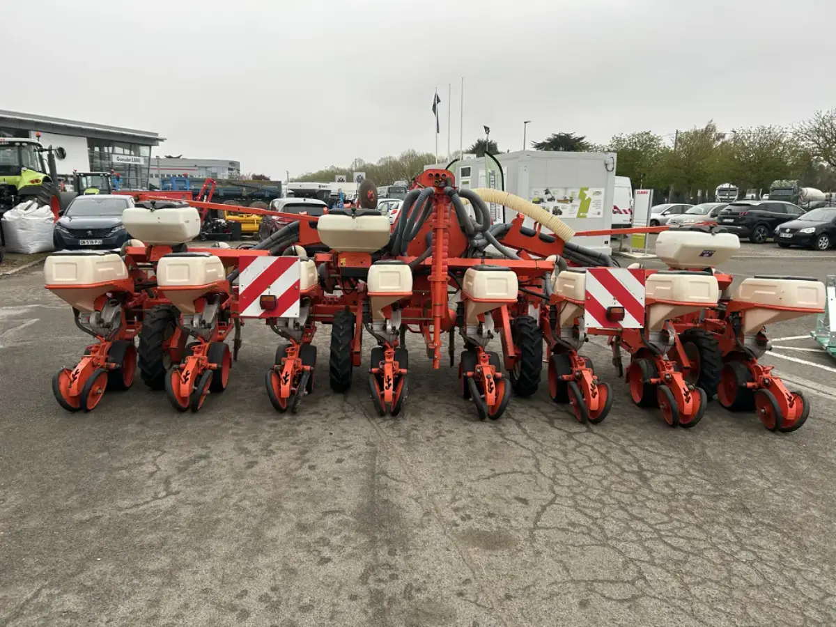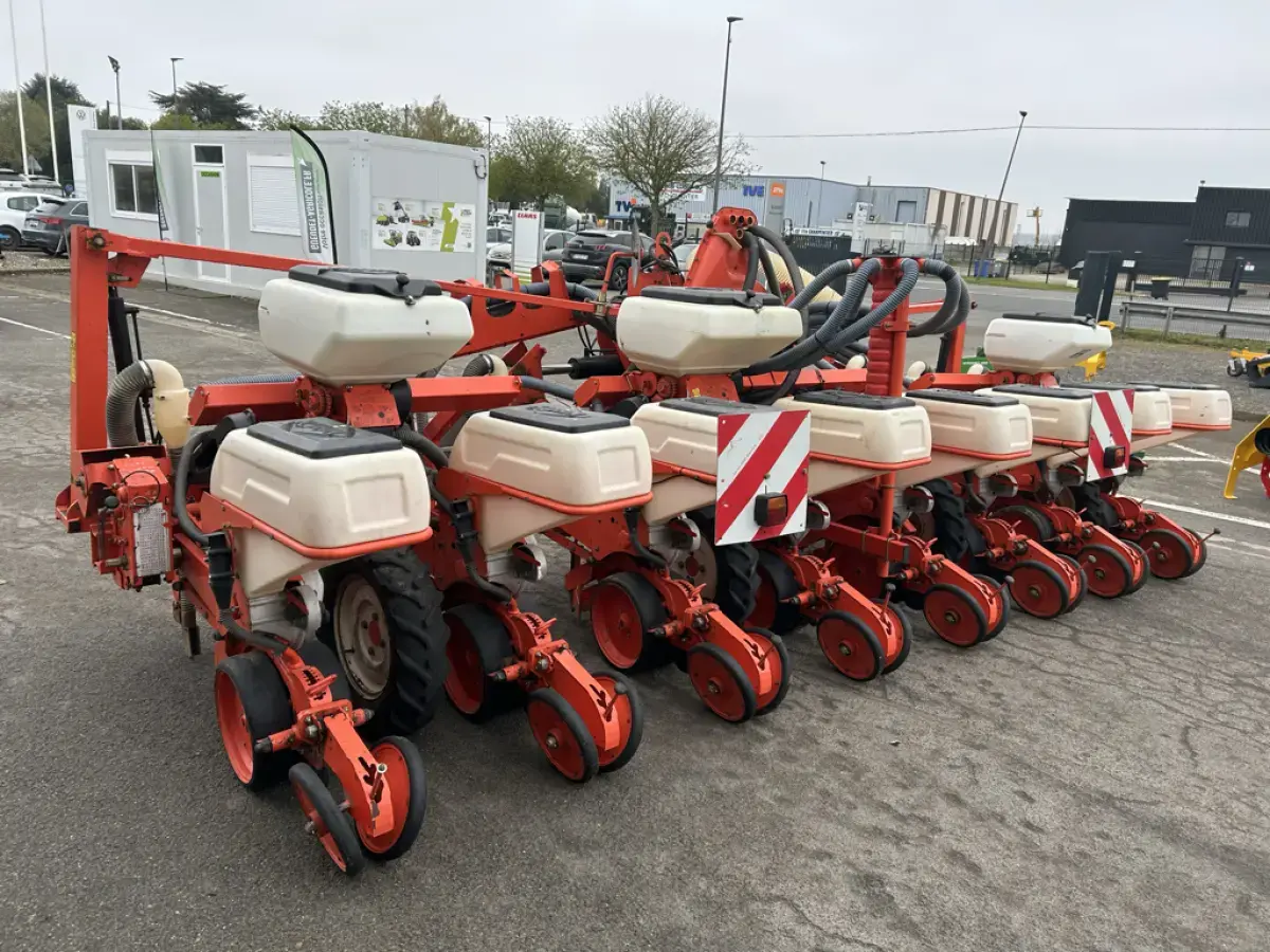 Semoir Monograine Kuhn Maxima de 2001 - 8 Rangs en 75 cm - Repliage Hydraulique - Kit Fertilisation - Disque Maïs - Problème faisceau reliant le boitier - Fonctionne Manuellement - Poutres Renforcées