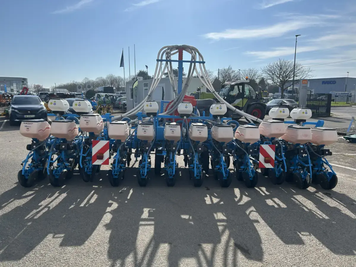 Monosem NG PLUS ME-12R de 2019 - 12 Rangs - Écartement 50cm - Traceurs Hydrauliques - Isobus - Repliable Hydrauliquement - Chasse Débris Rotatifs - Transmission Roue Libre - Disques Fertilisateurs - Microsem Microdrive 20 litres - Kit Signalisation Avec Feux - Disques Betterave
