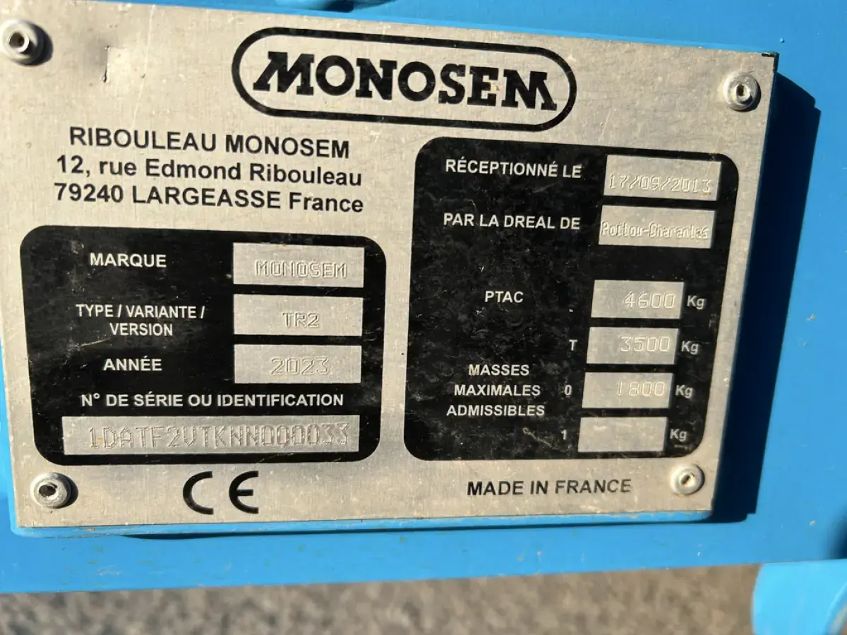 Semoir Monograine de marque Monosem type Valoterra année 2023 - 1300 Hectares - 12 Rangs - Écartement 50cm - Traceurs Hydrauliques - Isobus - Repliable Hydrauliquement - Chasses Débris Rotatifs - Disques Fertilisateurs - Microsem - Kit Signalisation Avec Feux - Disques Betterave
