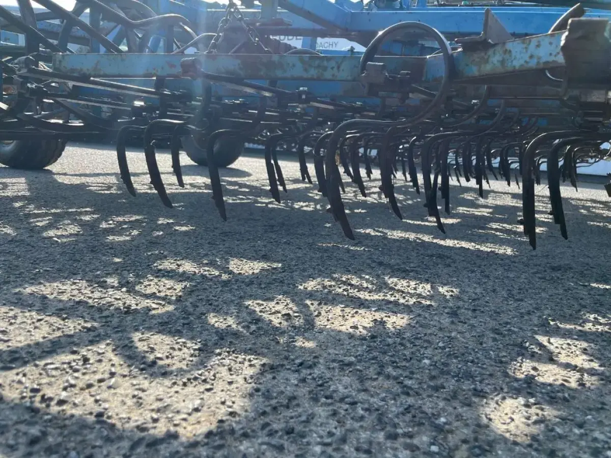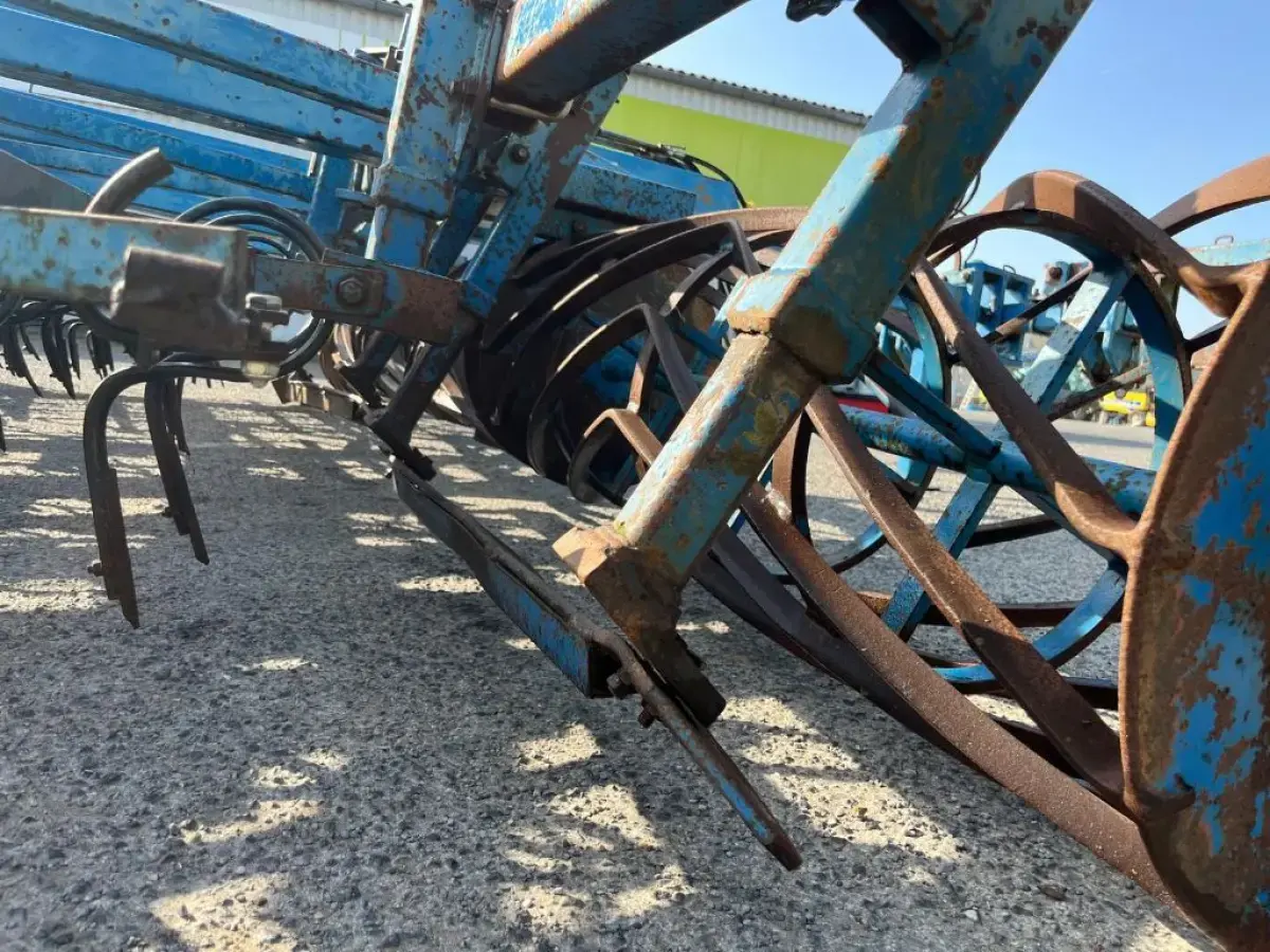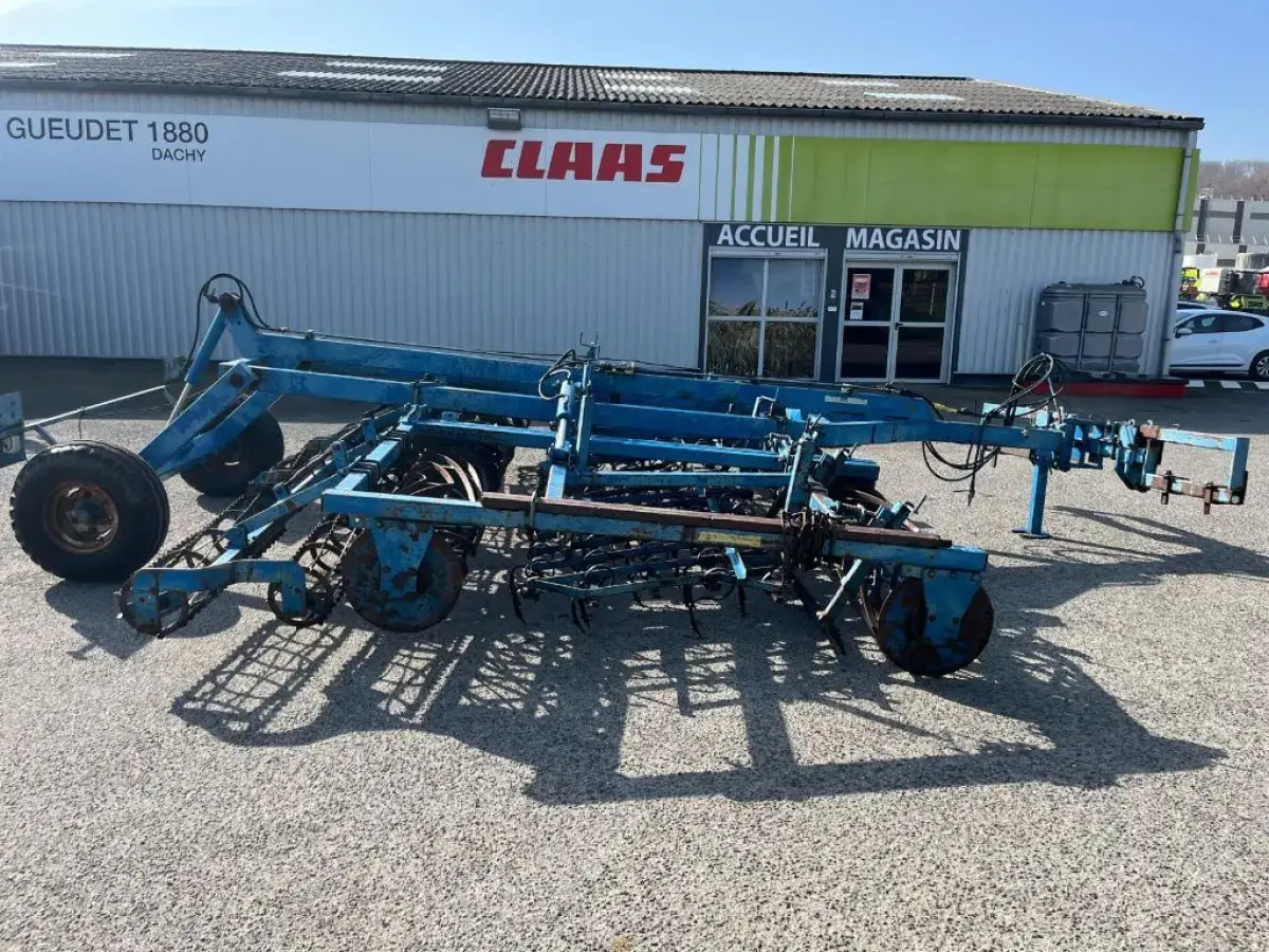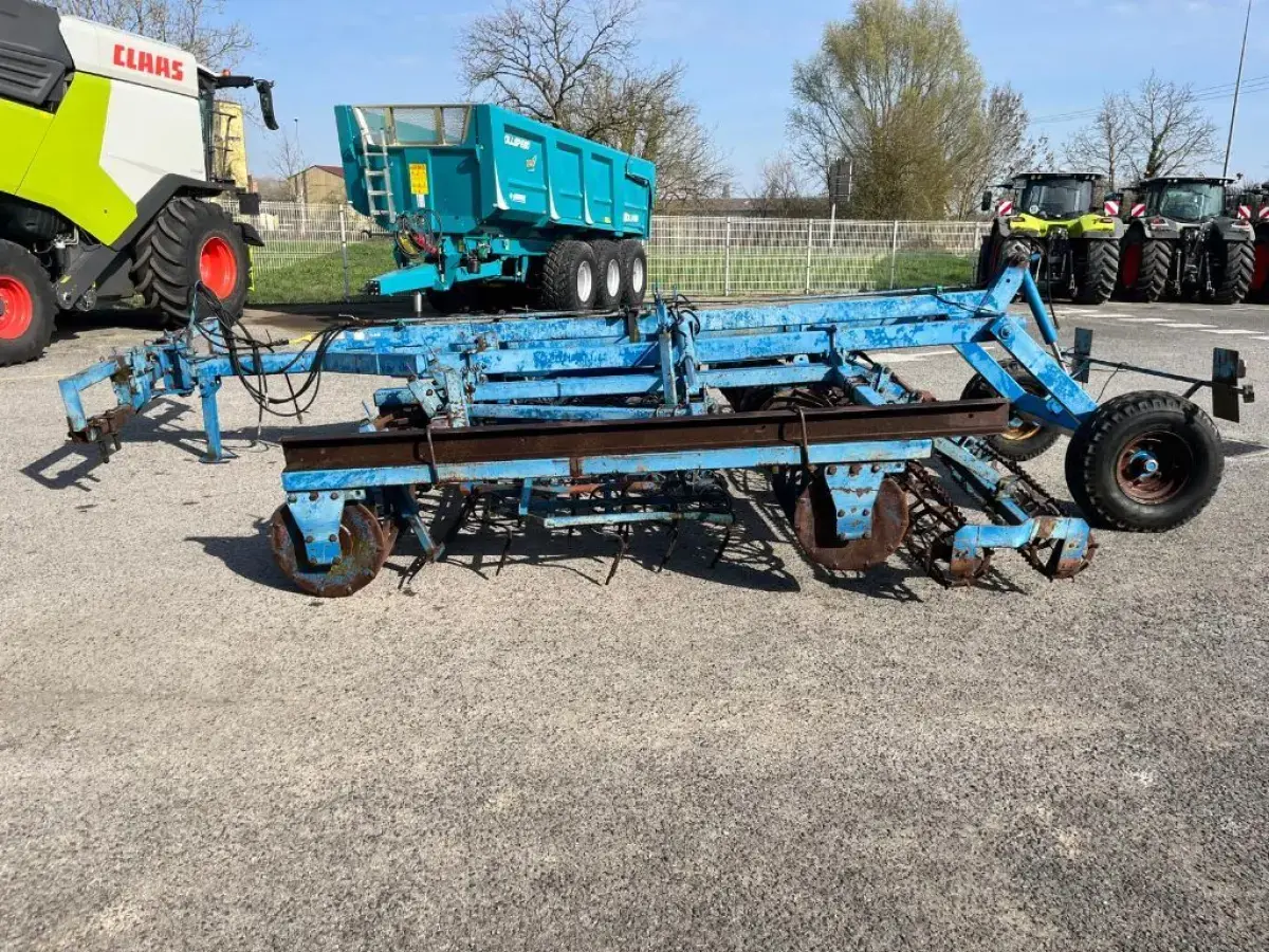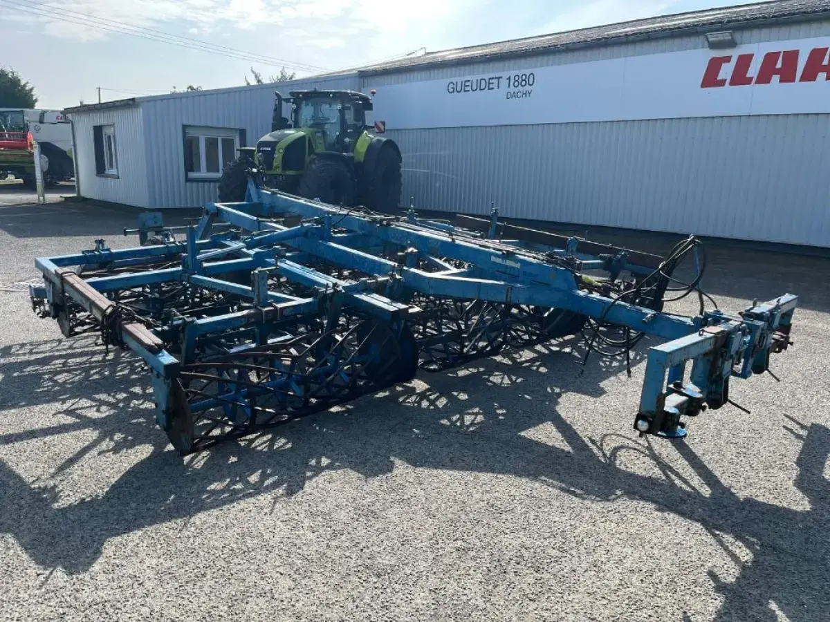 Préparateur de sol de marque RELIGIEUX de type COMDOR Année 1995 5.2 mètres Rouleau diamètre 500 Planche niveleuse 5 rangées de dents vibro Double rotoherse Attelage semi porté avec support pour effaces traces Une barrette de rouleau manquante Quelques dents et soc vibro à remplacer Palier à contrôler