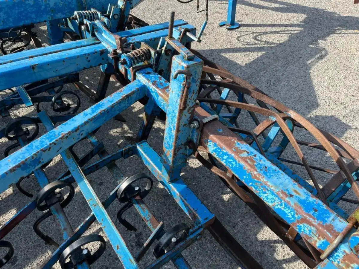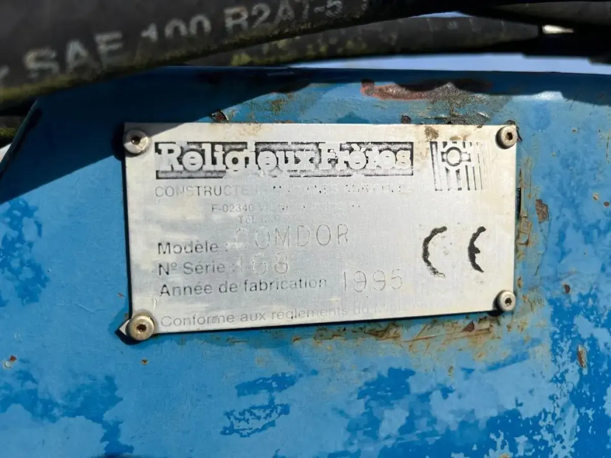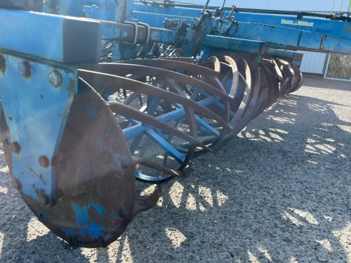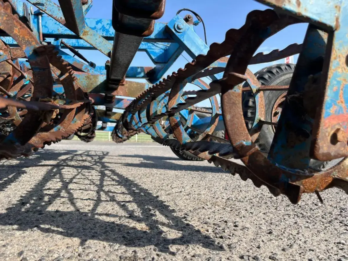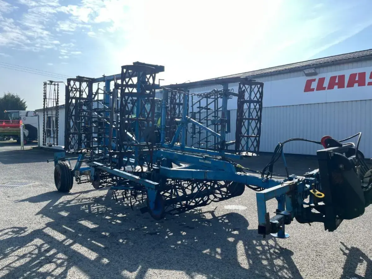 Préparateur de sol de marque RELIGIEUX de type COMDOR Année 1995 5.2 mètres Rouleau diamètre 500 Planche niveleuse 5 rangées de dents vibro Double rotoherse Attelage semi porté avec support pour effaces traces Une barrette de rouleau manquante Quelques dents et soc vibro à remplacer Palier à contrôler